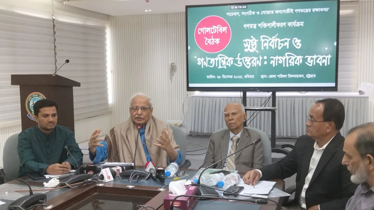 রোববার চট্টগ্রাম পরিষদ মিলনায়তনে অনুষ্ঠিত ‘সুষ্ঠু নির্বাচন ও গণতান্ত্রিক উত্তরণ: নাগরিক ভাবনা’ শীর্ষক গোলটেবিল বৈঠকে এসব কথা বলেন বক্তারা। অনুষ্ঠানটি আয়োজন করে গণতান্ত্রিক শক্তিশালীকরণ কার্যক্রমের অংশ হিসেবে সুজন (সুশাসনের জন্য নাগরিক) চট্টগ্রাম।