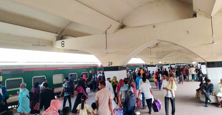 রোববার (৩০ মার্চ) সকাল ৮টা থেকে সাড়ে ৯টা পর্যন্ত রাজধানীর কমলাপুর রেলওয়ে স্টেশন ঘুরে এমন চিত্র দেখা যায়।