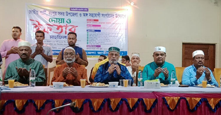 রংপুর সদর উপজেলা জাতীয় পার্টির আহ্বায়ক মাসুদ নবী মুন্নার সভাপতিত্বে অনুষ্ঠিত দোয়া ও ইফতার মাহফিলে প্রধান বক্তা হিসেবে ছিলেন জাতীয় পার্টির কো-চেয়ারম্যান ও রংপুর মহানগর সভাপতি মোস্তাফিজার রহমান মোস্তফা। বিশেষ অতিথির বক্তব্য রাখেন জাতীয় পার্টির প্রেসিডিয়াম সদস্য ও রংপুর মহানগর সাধারণ সম্পাদক এস.এম ইয়াসির, জাতীয় পার্টির কেন্দ্রীয় ভাইস চেয়ারম্যান ও রংপুর জেলার যুগ্ম আহ্বায়ক আজমল হোসেন লেবু, কেন্দ্রীয় সাংগঠনিক সম্পাদক ও রংপুর জেলা জাতীয় যুব সংহতির সভাপতি হাসানুজ্জামান নাজিম।