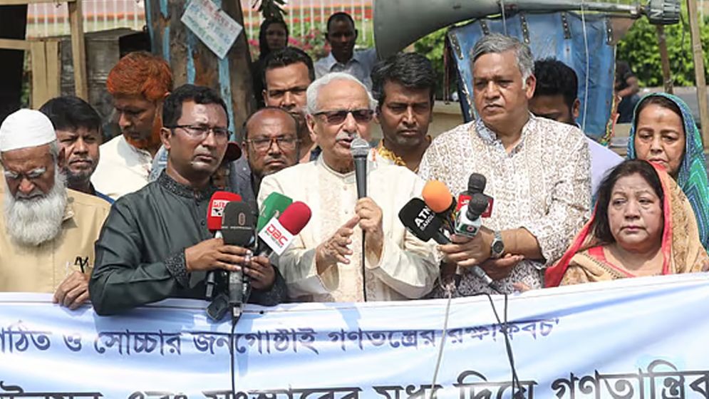 শনিবার রাজধানীর মানিক মিয়া অ্যাভিনিউয়ে সুজন আয়োজিত মানববন্ধনে তিনি এসব কথা বলেন। ‘অবনতিশীল আইনশৃঙ্খলা পরিস্থিতির উন্নয়ন এবং সংস্কারের মধ্য দিয়ে গণতান্ত্রিক রাষ্ট্র বিনির্মাণ’-এর দাবিতে মানববন্ধন অনুষ্ঠিত হয়। এতে মব-কালচার বন্ধ করাসহ ২৬ দাবি জানানো হয়।